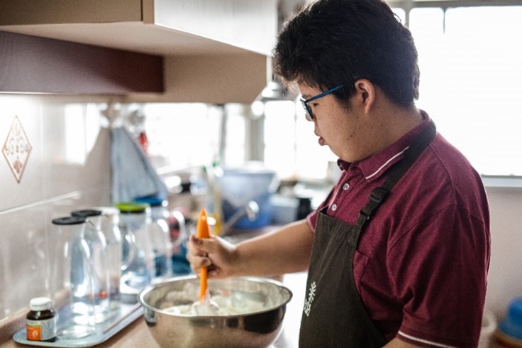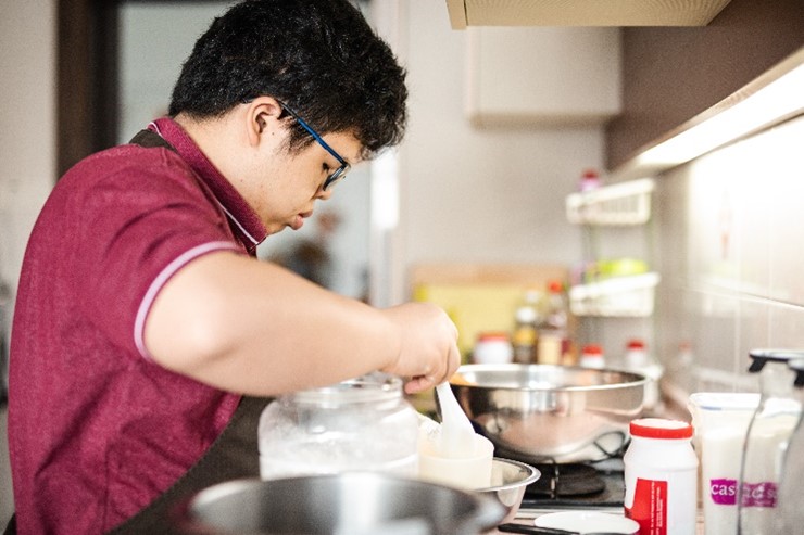 Filmer Tan graduated from Rainbow Centre Margaret Drive School in 2019. His love for baking was kindled when his father learnt to bake chiffon cakes with real fruits and taught him how to do likewise. Filmer would bring his cakes for school events or simply share them with his teachers and classmates. Their enthusiastic response spurred him to continue baking.