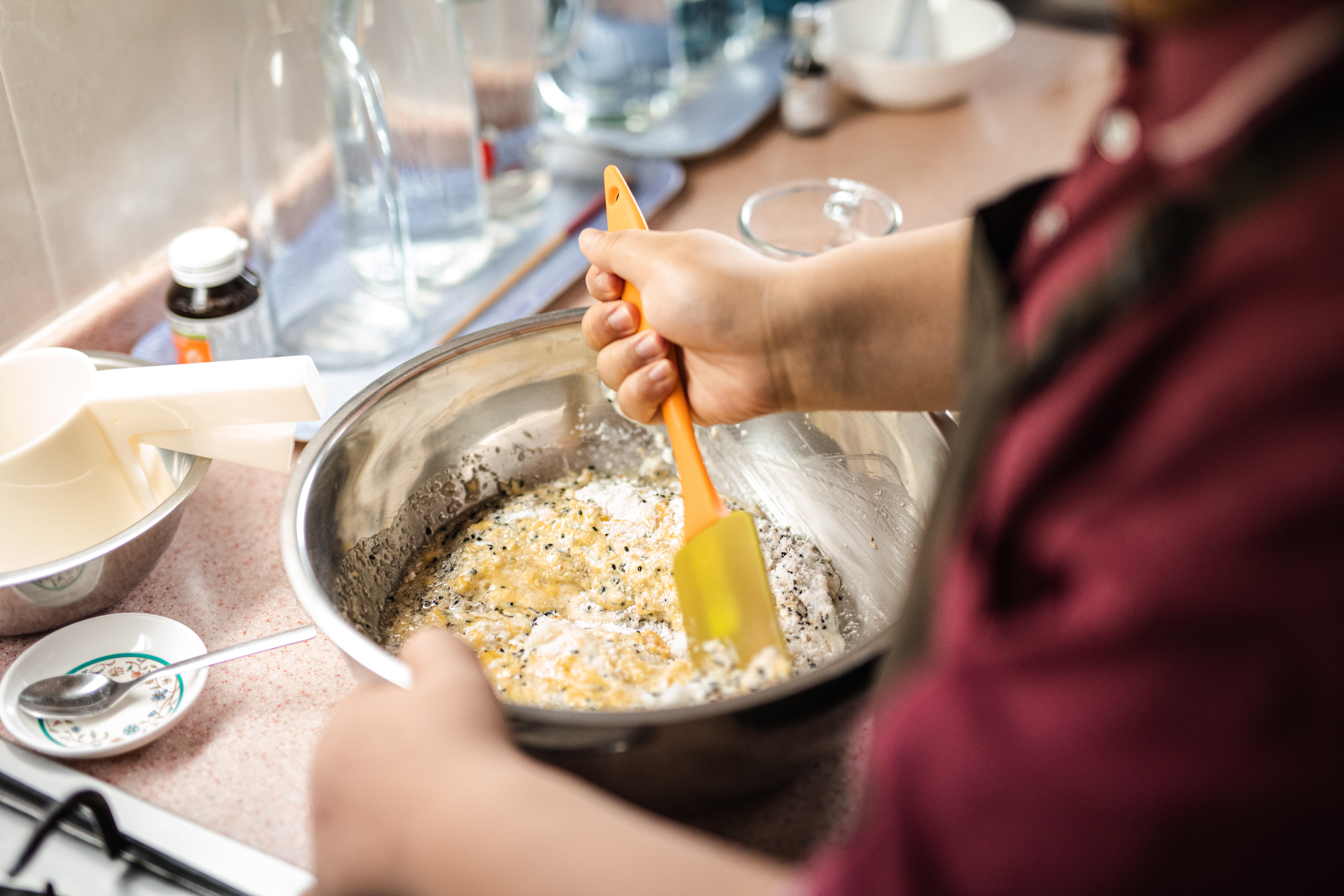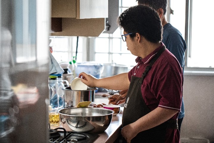 As a child, Filmer was diagnosed with Pilocytic Astrocytomam, a rare type of brain tumour, and had to go through several major surgeries. In the kitchen, his limitations with his left hand were overcome by modifying the use of utensils or learning to use kitchen tools his way. He can now perform most of the tasks in the baking process.