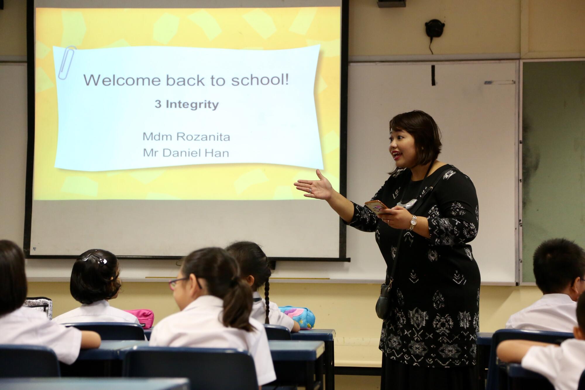Every teacher arms herself with a pack of supplies for class. On this first day of school, Mdm Nita plans to distribute worksheets to get to know her students better and to help them set goals for the year ahead.