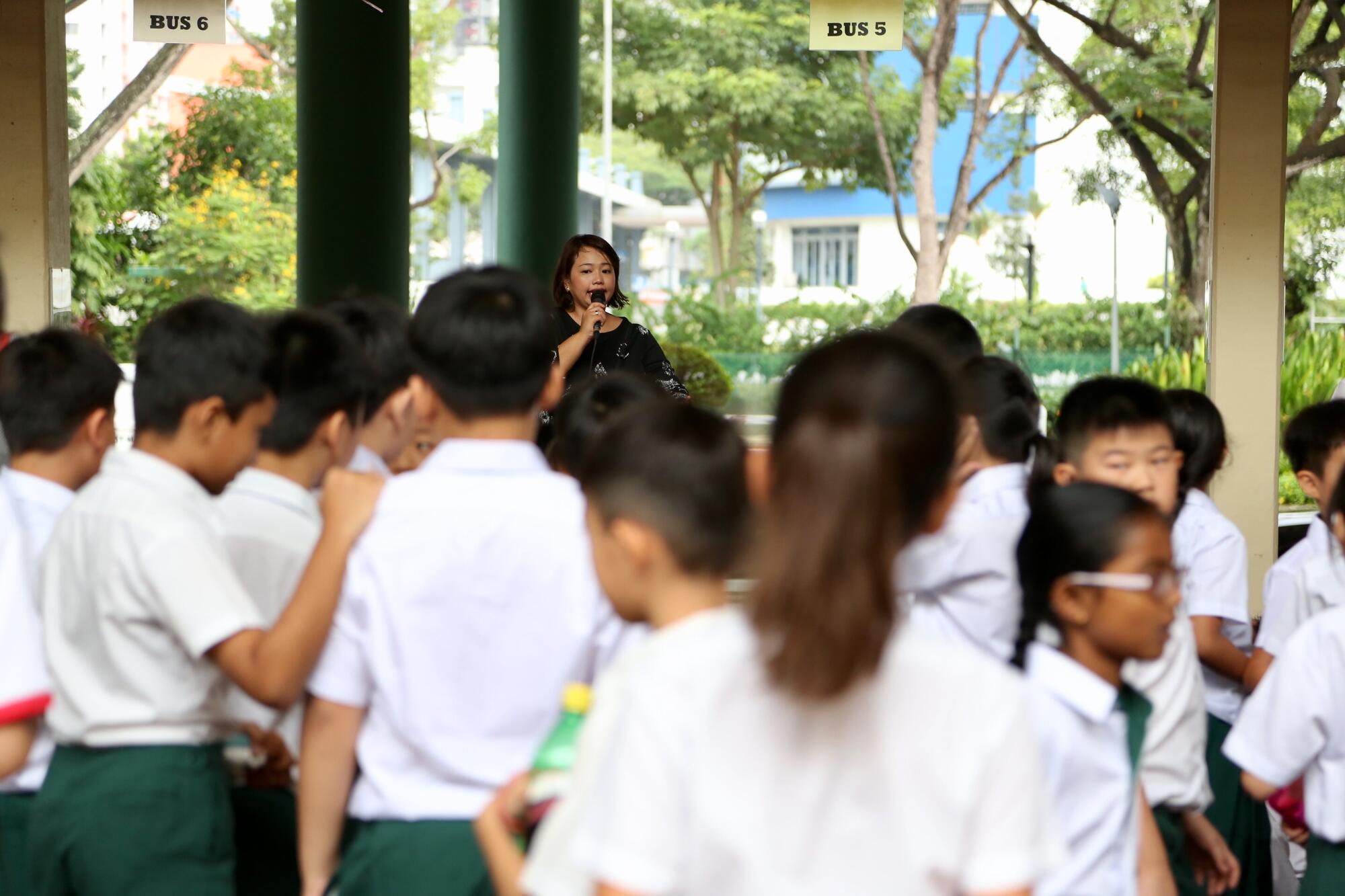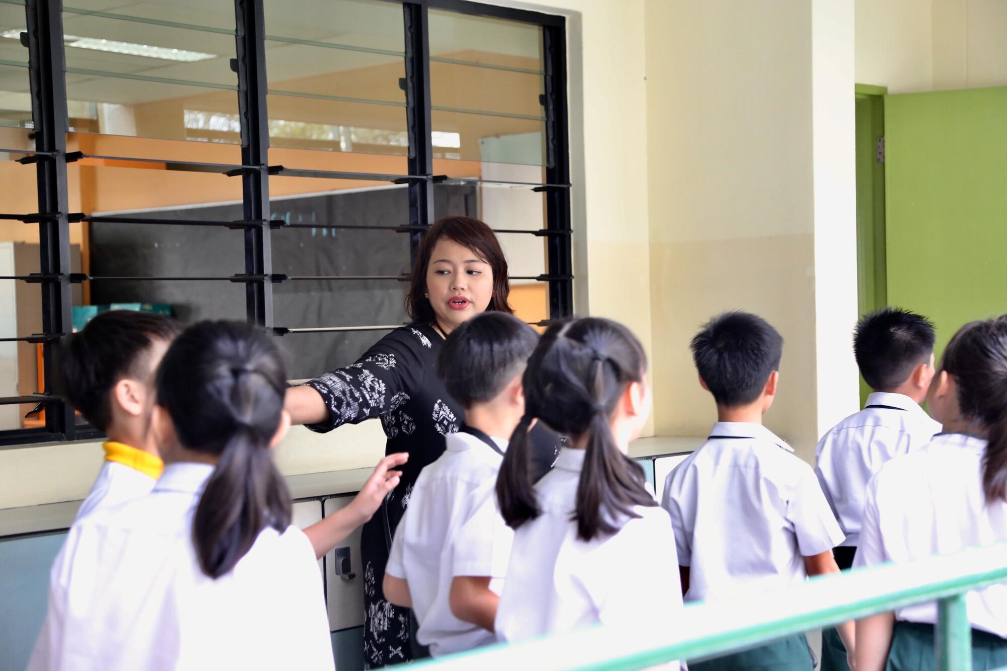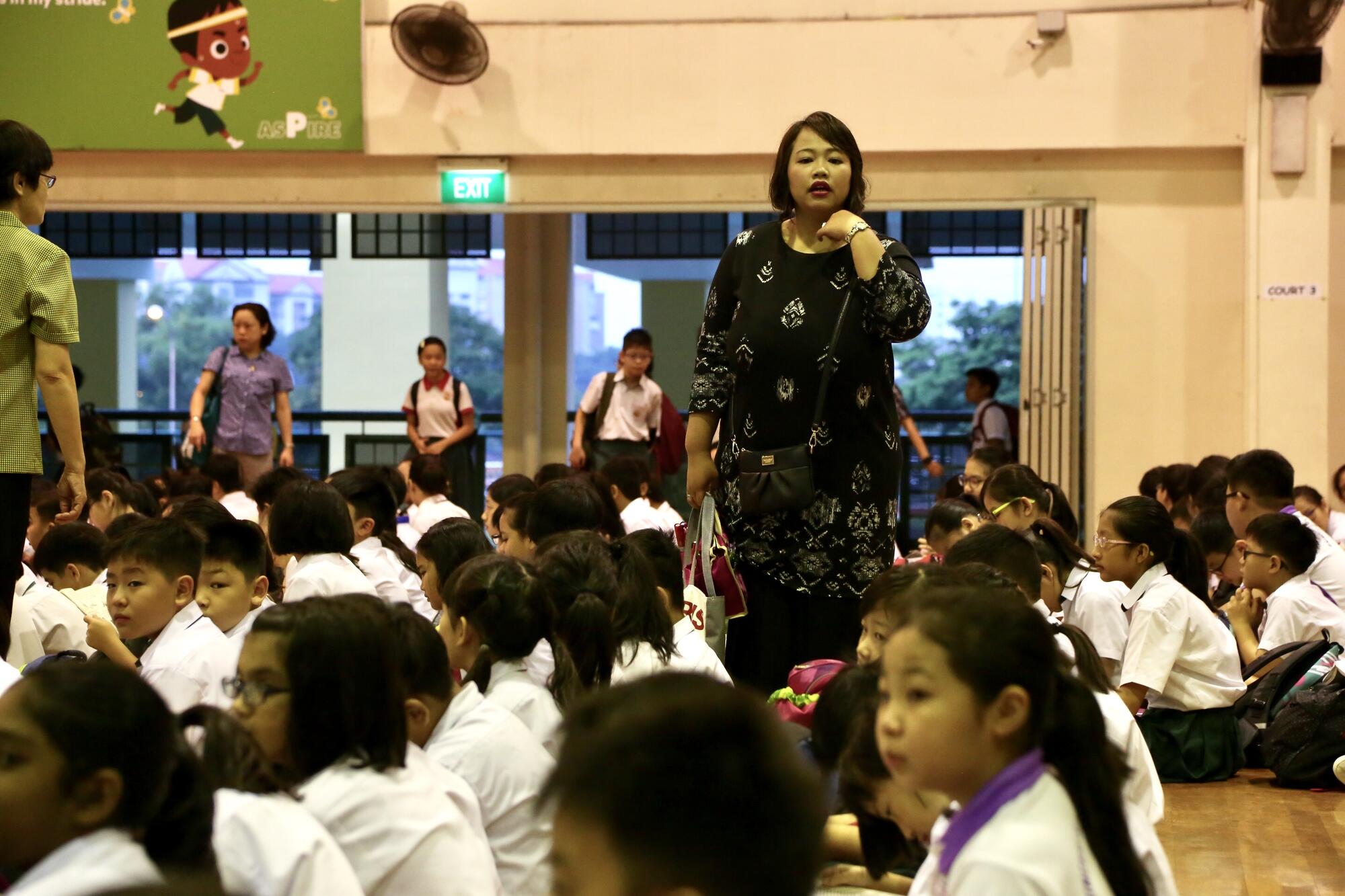 Before morning assembly, Mdm Nita goes down the line to check on her students.