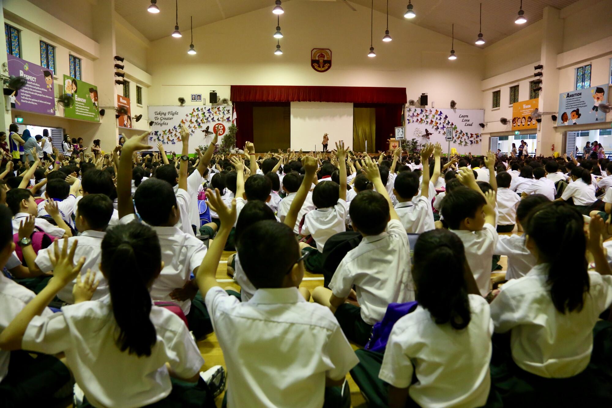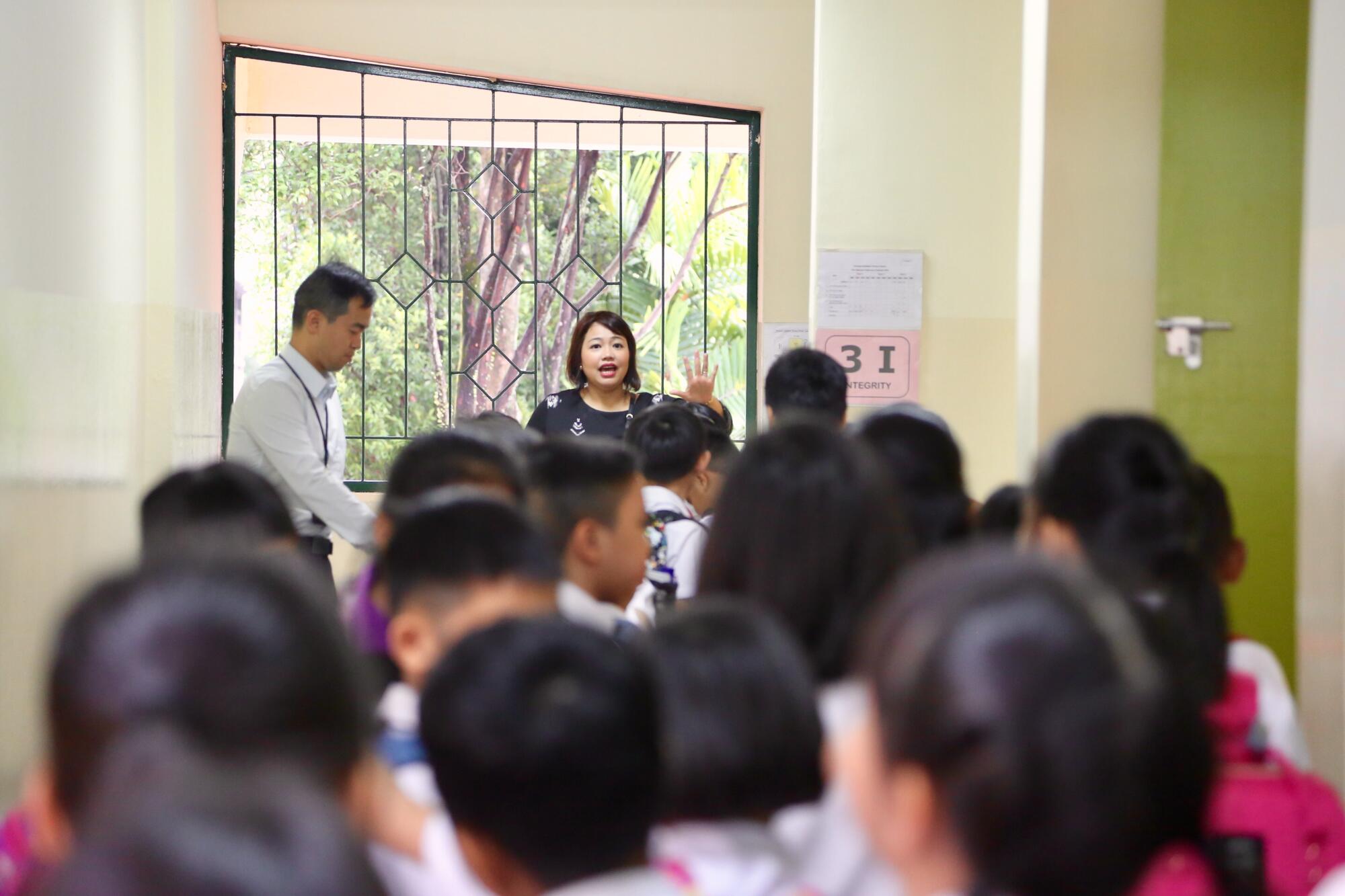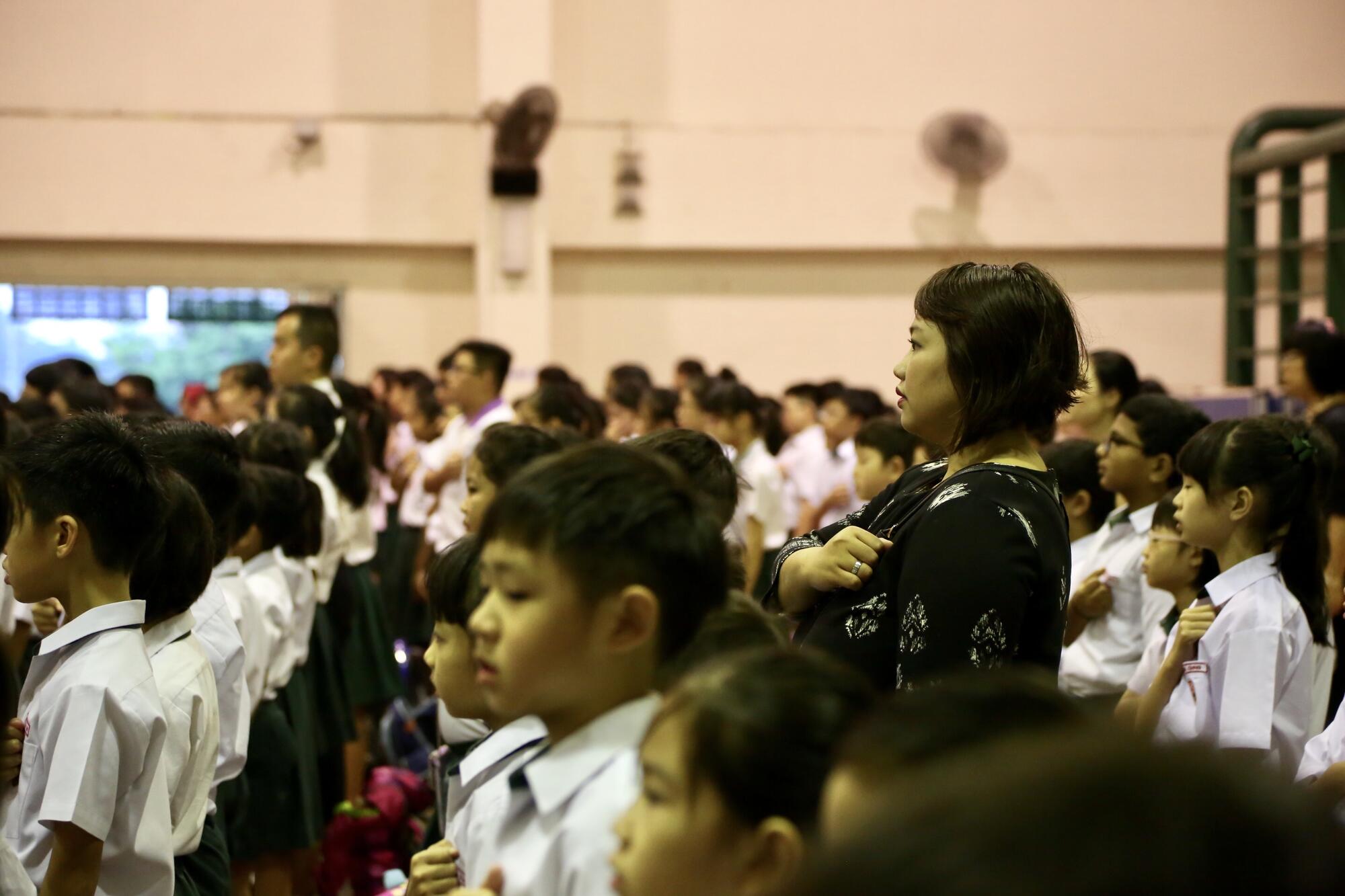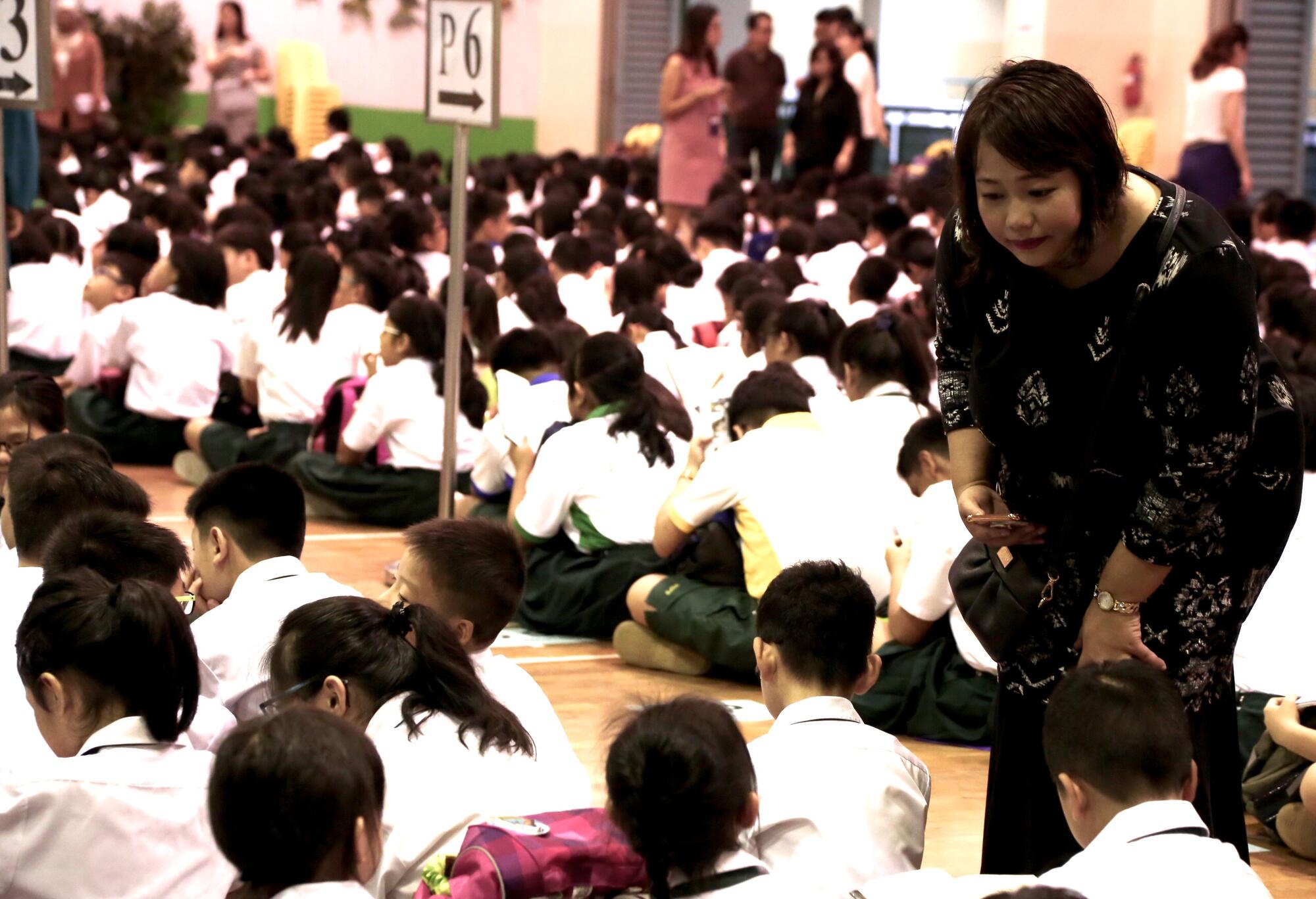 Before morning assembly, Mdm Nita goes down the line to check on her students.