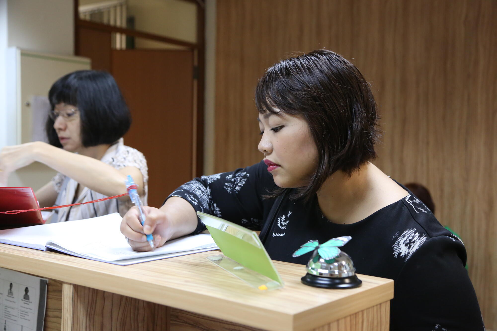 Stepping into school, Mdm Nita indicates her attendance at the general office. Simple tasks like these remain the same no matter how old you are!