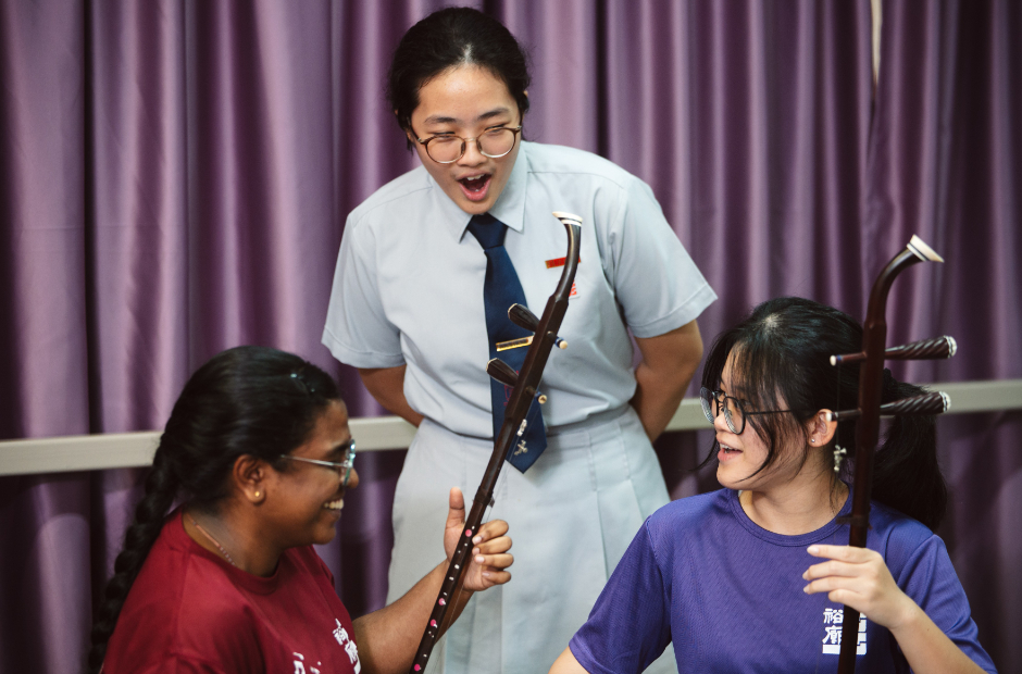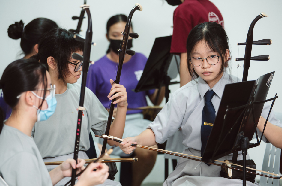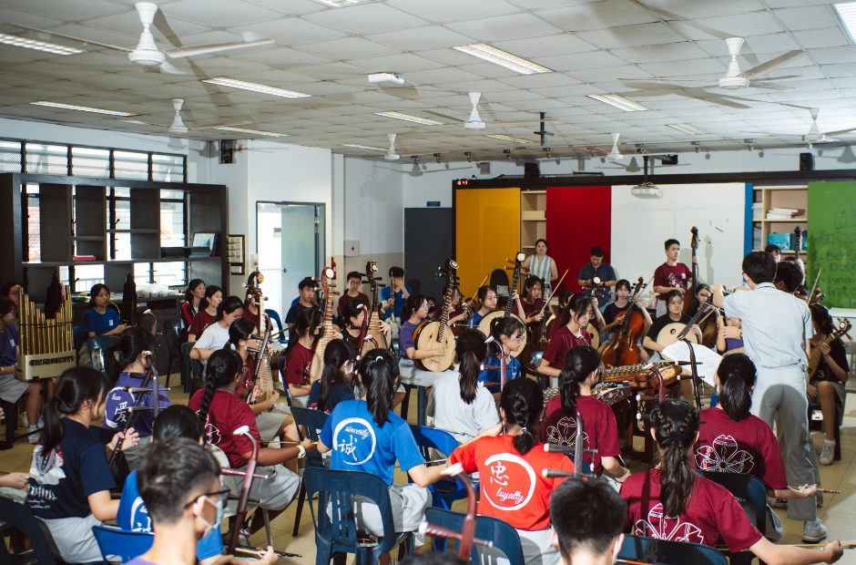 In Jurong Secondary School’s Chinese Orchestra, alumni who have graduated continue to play key roles in the CCA.