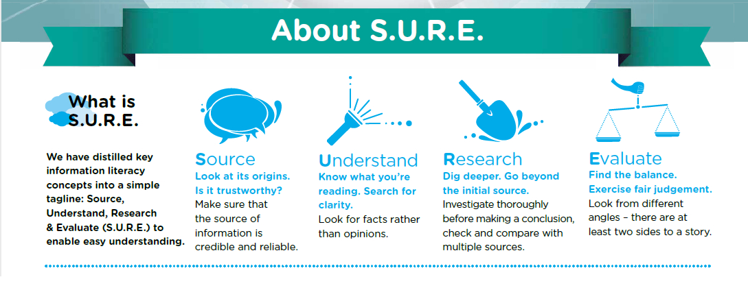 Our children would need guidance as they navigate through tons of information online. How, then, can we guide our children in doing so? Using National Library Board (NLB)’s S.U.R.E campaign to promote Information Literacy, we have come up with some possible ways you can help your child develop these skills further.