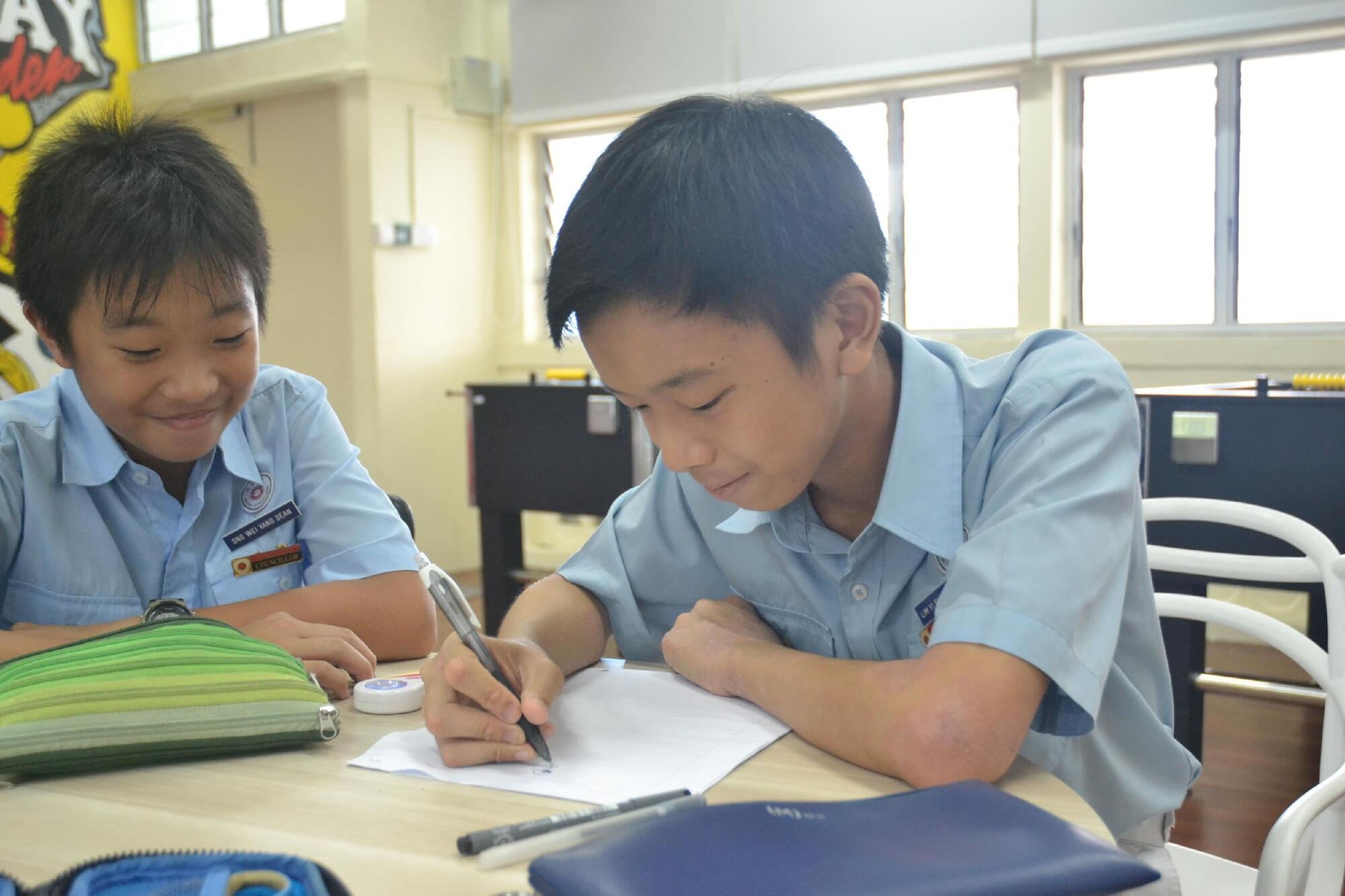 Here’s Russell Lim (right), penning down his thoughts as his teammates chipped in ideas for their promotional video assignment.
