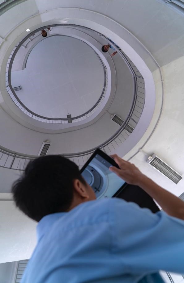 Keeping the lighting condition and the environment settings in mind, Russell and Marc (centre) directed their teammate, Sean (left), to strike a pose as he framed the shot.