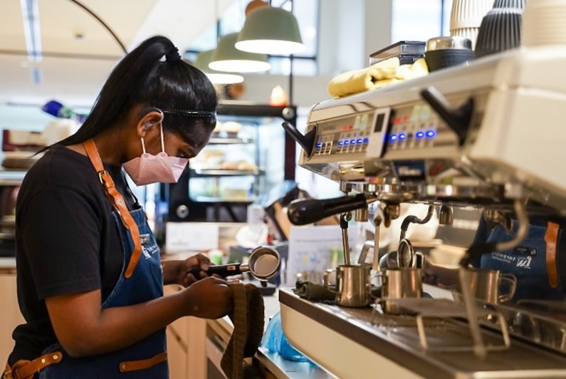 With consistent practice and guidance from her work supervisor and colleagues – from how to froth the milk to using the right amount of coffee powder — Ambika is able to prepare coffee independently and confidently. Whether it’s a latte or white coffee with sandwich, she’s ready to whip it up!