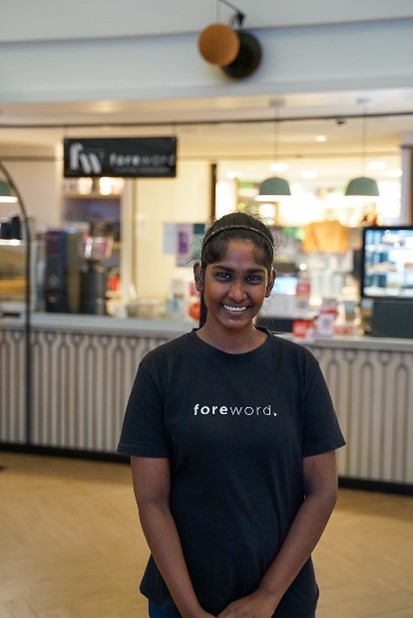Based on Ambika’s interests and preferences, CPAS School connected her with a work opportunity at Foreword upon her graduation. She started working at its National University of Singapore outlet in 2018. Ambika (first from right) is seen here with her colleagues at the Temasek Shophouse outlet, where she is now based.