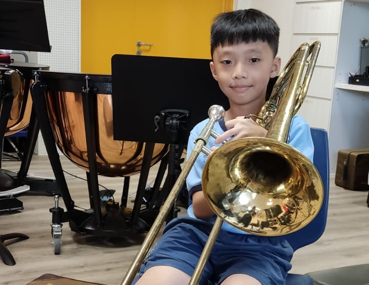“I find the trombone interesting to play because it has no ‘buttons’ like the other brass instruments (referring to the use of a sliding tube to change notes instead of pressing valves). I enjoy the challenge of remembering the different positions to get the right note,” he says.