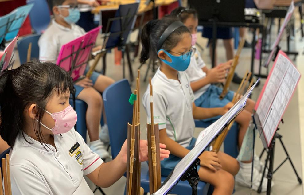 The tuneful strains of the angklung and kulintang are familiar to students of Townsville Primary School and Guangyang Primary School. Their schools offer angklung and kulintang ensembles as a CCA, where students sign up to play the two traditional bamboo instruments from Indonesia – the angklung is handheld and the kulintang is struck like a xylophone.