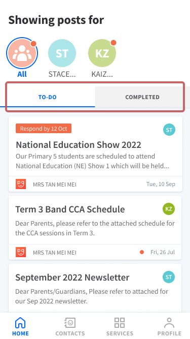 Ms Ashley Poh, mother of two boys – one in primary and another in secondary school – likes using the “To-Do” and “Completed” functions. “With a few taps, I know what activities each of my sons is involved in and what I need to give consent to. After I’ve completed the ‘task’, it’s archived under ‘Completed’ so I can refer to it whenever I need to.”