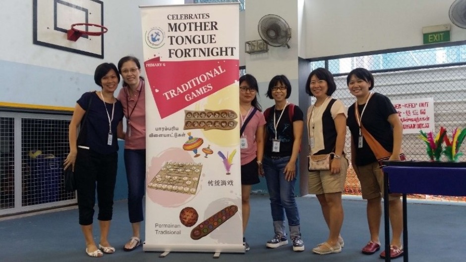 The four friends were part of a Mother Tongue Fortnight recess activity held at AGPS in 2017, where they organised games like chapteh for the students.