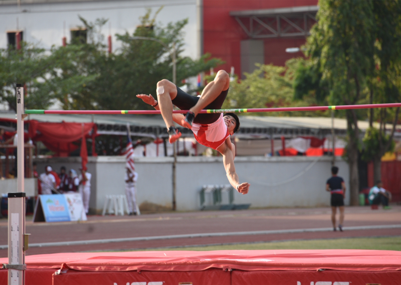Kampton Kam clearing the 2.10m mark at the boys’ high jump final to secure gold.