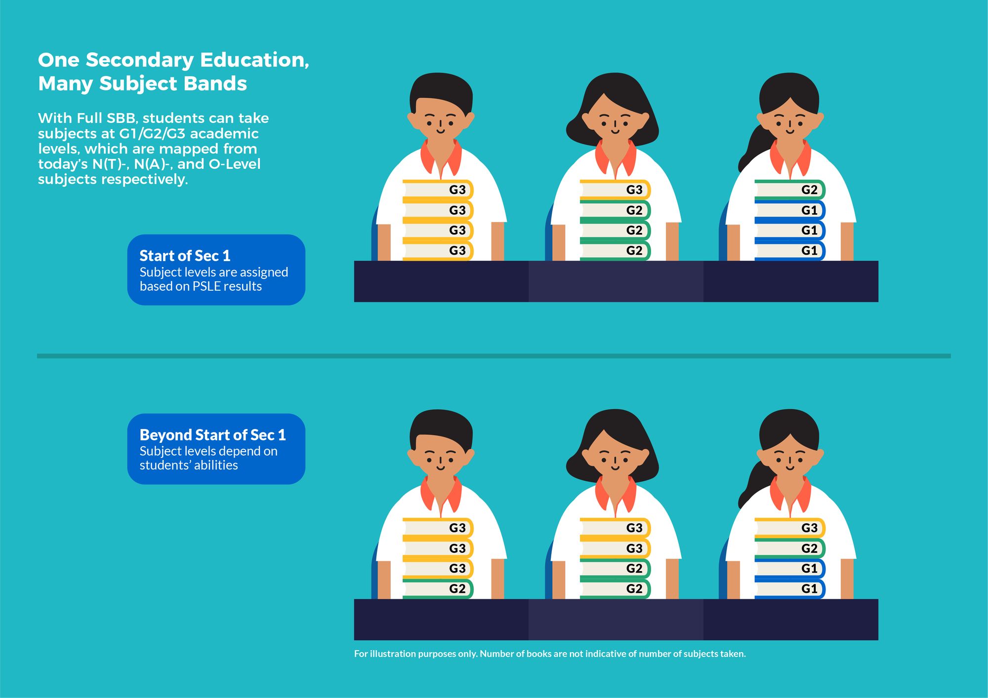 In 2028, the common certificate will replace our current O and N levels certification which students will use to enter JC, Poly and ITE. Find out more about this and other changes from this series of graphics on Full Subject-Based Banding.