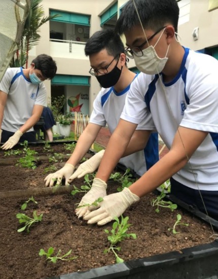 Every class in YISS adopts a vegetable plot when they start Secondary 1. Students can grow crops such as lettuce and kangkong at their plot.