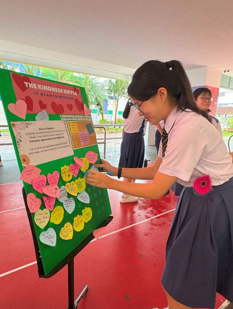 The PSLs also contribute to school-wide events aimed at fostering kindness and overall well-being in school. During Kindness Week, which was held in Term 2, Muthumanickam, Ying-Chen and their fellow PSLs handed out flowers in the canteen to brighten up everyone’s day. “People who received these flowers could also give them to someone else to keep the circle of kindness going,” Ying-Chen shares.