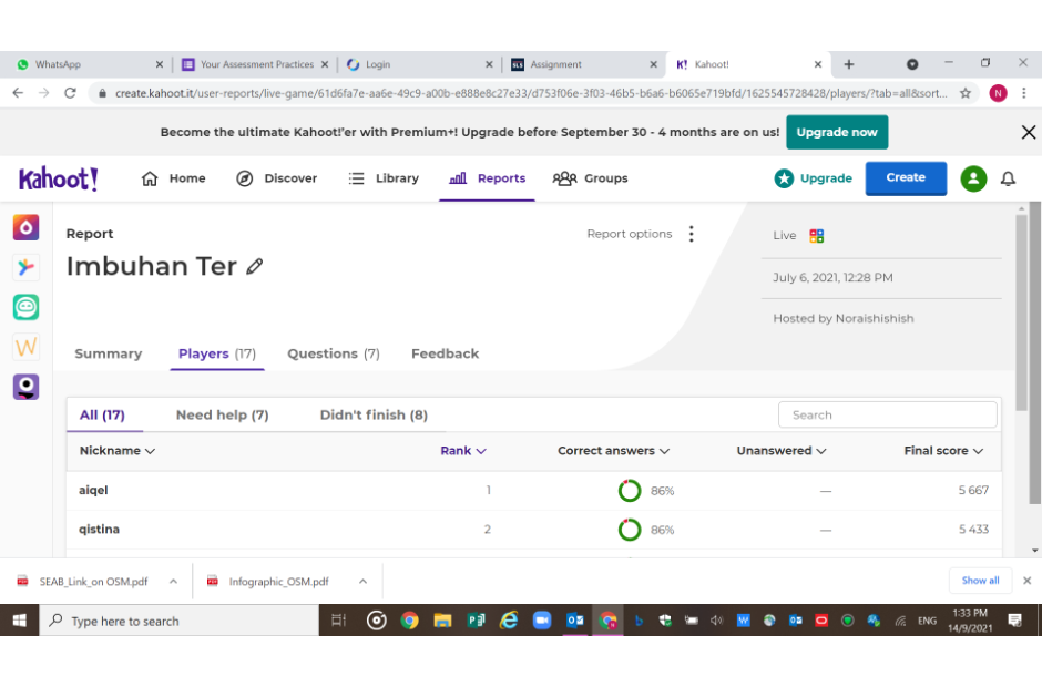 Kahoot is also used in Malay Language lessons to test students’ memory of new words and suffixes.