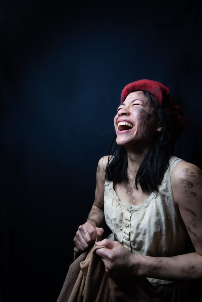With her face smudged in “dirt”, wearing a red beret and long beige overcoat, Ms Nathania Ong strode on stage in London and sang the heart-wrenching strains: