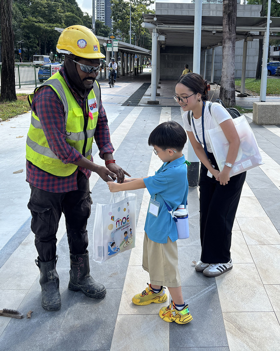 From packing care packs to making heartfelt crafts, they personally thanked shopkeepers, construction workers, and MRT staff for their hard work.