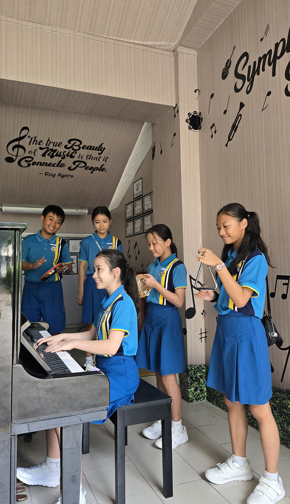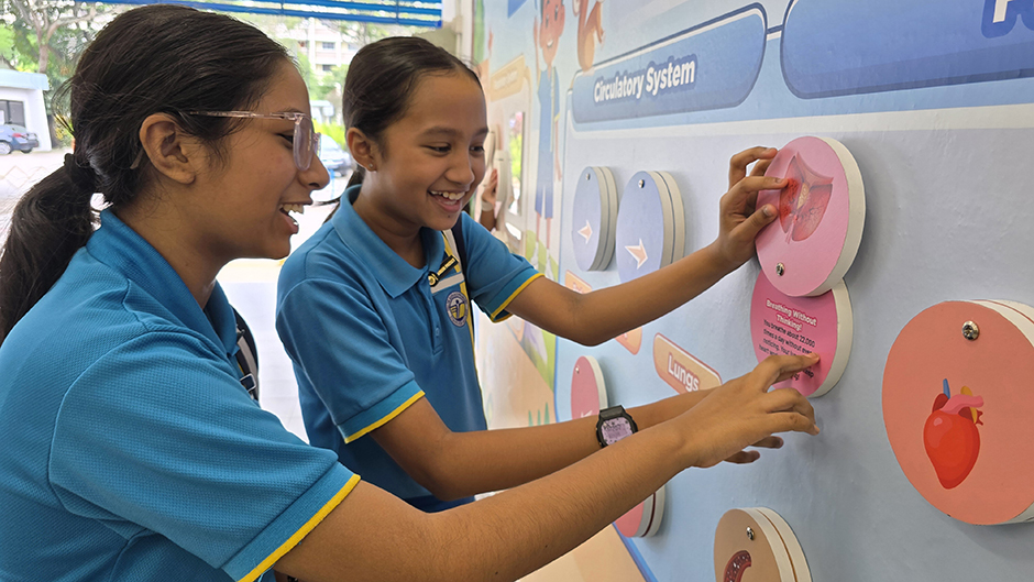 Through our Learning Space Catalyst initiative, we turn school areas into vibrant zones where the environment acts as the third teacher. Students explore Science through Plant Reproduction and Digestive System walls, and learn about sustainability at the Green Roof. Spaces like Music Symphony and Artistry in Motion spark creativity. The Healthy Eating Wall promotes well-being.