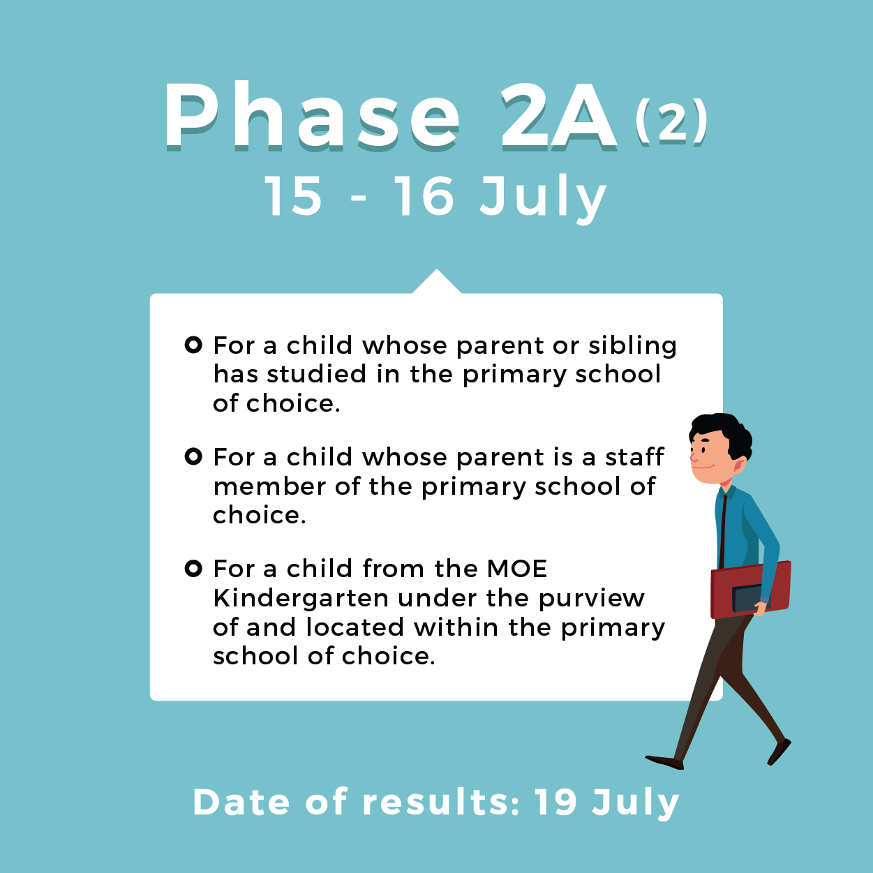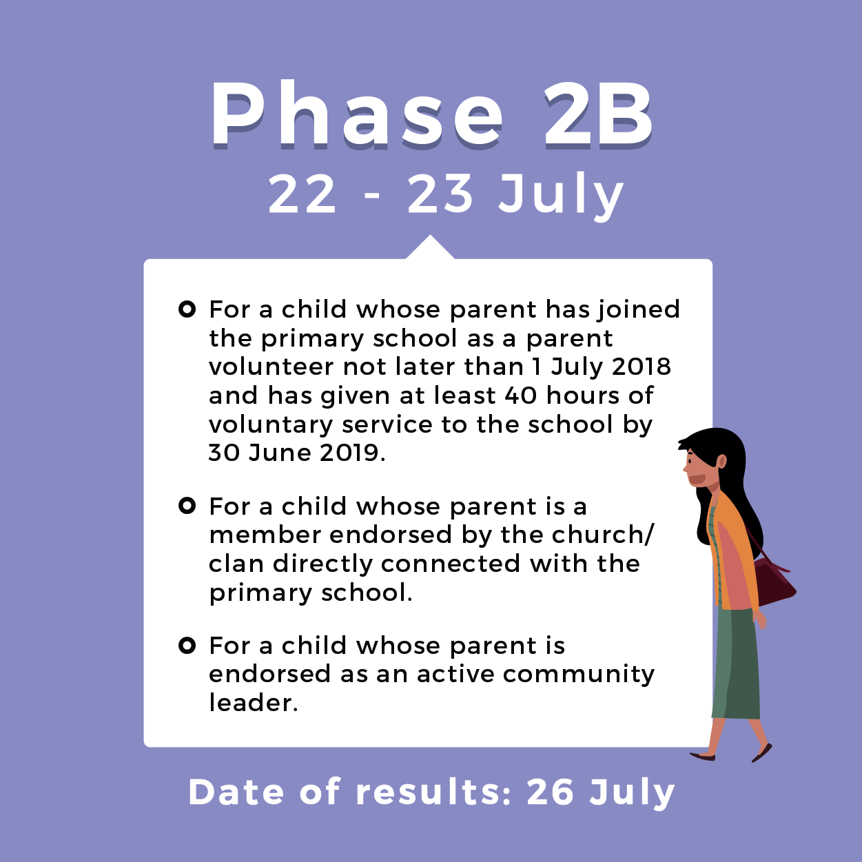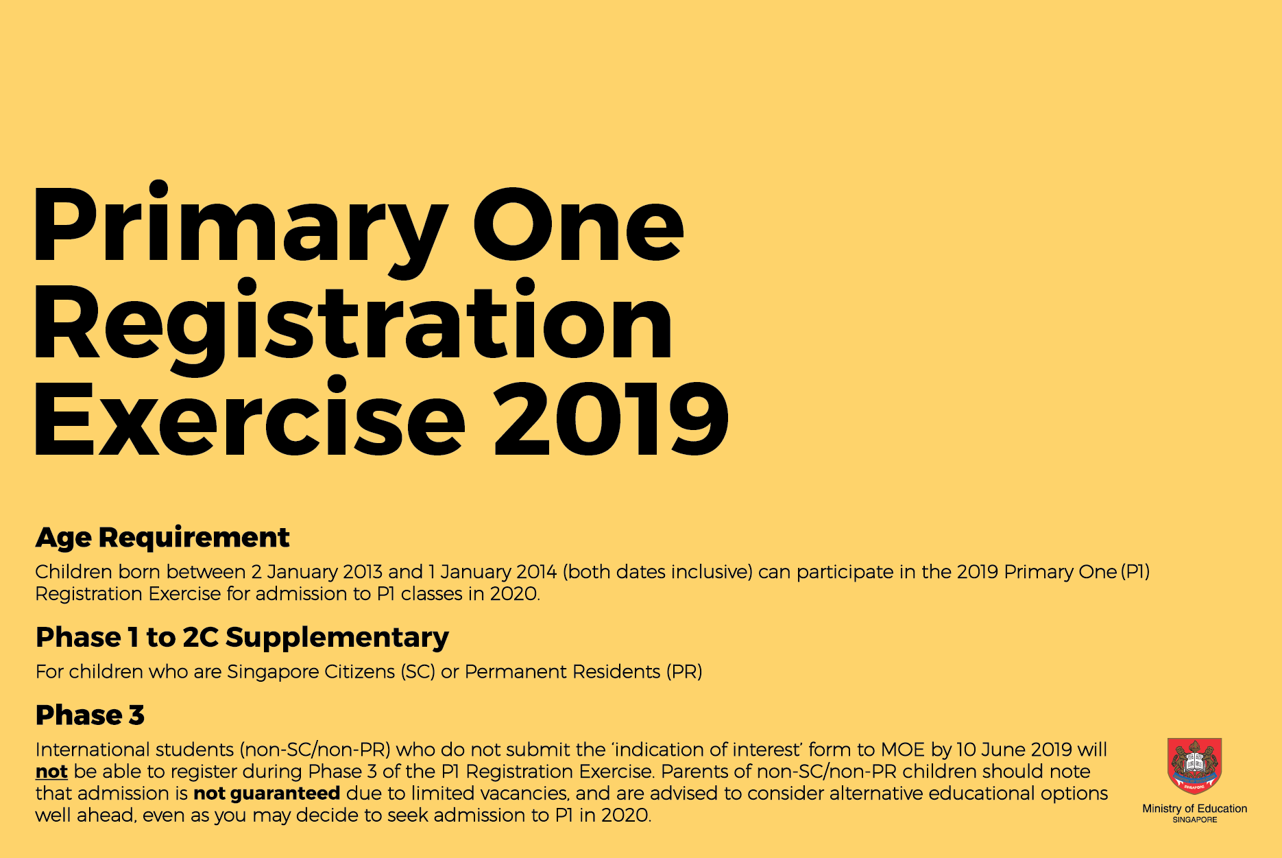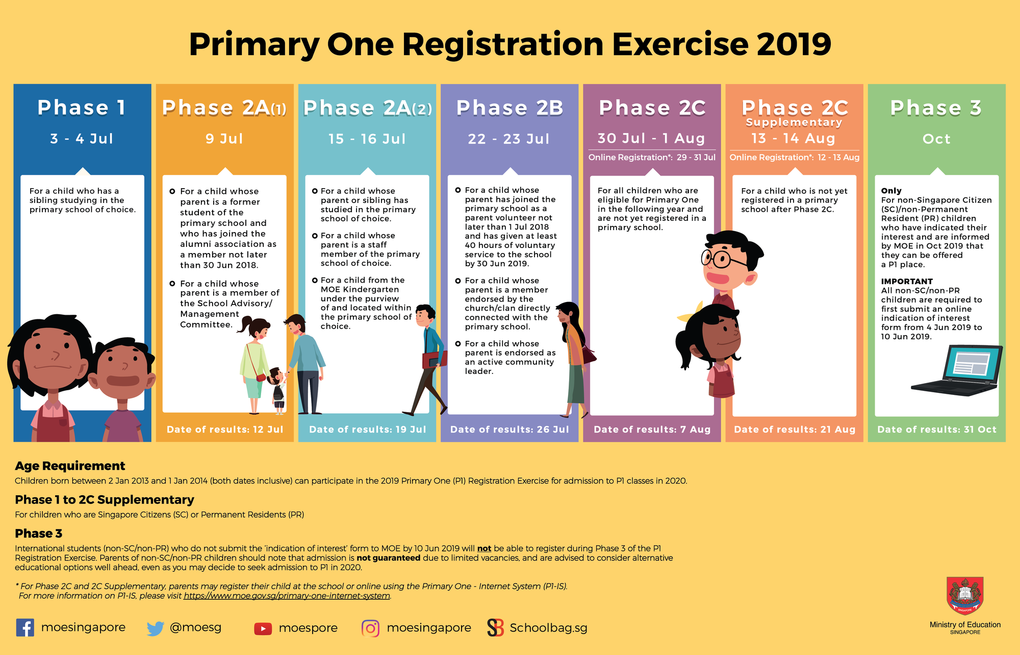 The 2019 Primary One Registration Exercise will take place from Wednesday, 3 July to Thursday, 31 October. Read on to find out which registration phase applies to you.