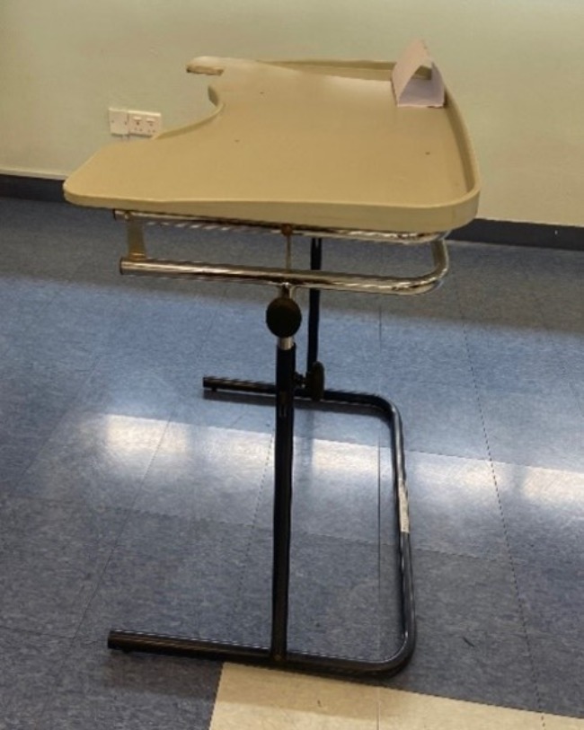 A table with adjustable height that allows wheelchair users to write comfortably according to their needs. The school consulted with AWWA on how best to accommodate specific needs of students.