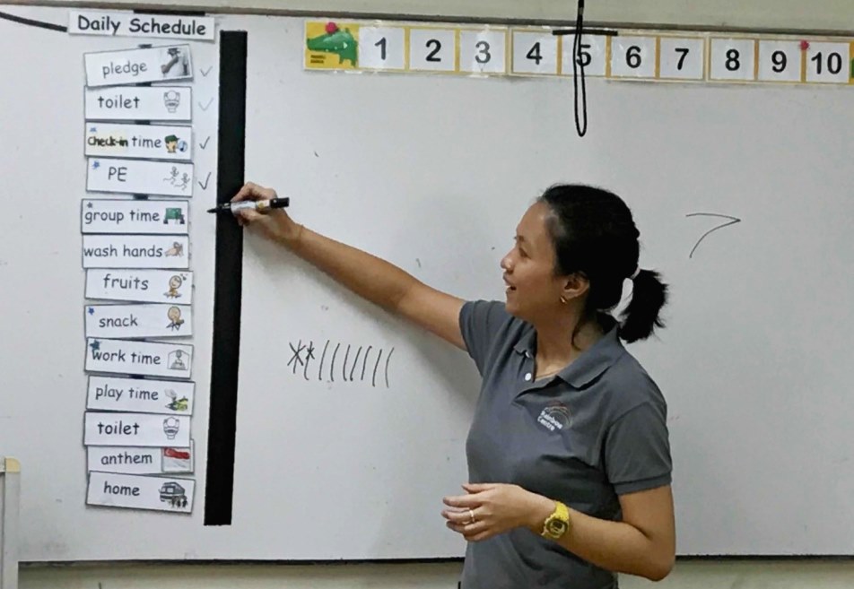 Mr Sam tried one-to-one lessons and short breaks to help Jia Ye to focus on learning. When Jia Ye listened and followed instructions that helped him to learn better, he was rewarded with his favourite things, like making a phone call to his mother. Working with his co-teacher, the psychologists and social workers, Mr Sam supported Jia Ye’s family as well, and would share tips with his mother so she could also help him better at home. It was rough time for the special education teachers at St Andrew’s Autism School and the Lai family, but Mr Sam persisted.