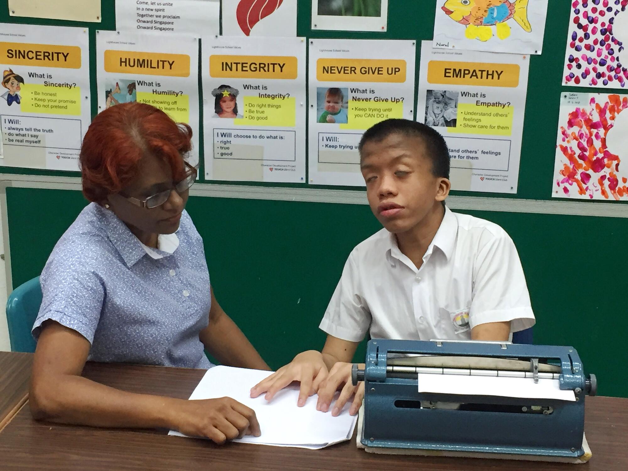 Starting with the basics, she taught the 9-year-old boy to cope with day-to-day tasks, such as buttoning his own shirt and putting on his socks and shoes, through a customised Daily Living Skills programme. Her patience and encouragement calmed his fears and Sufian began to gradually relate to her. Through numerous one-on-one lessons, Sufian also learnt to read Braille and is now enthusiastic about learning new things.