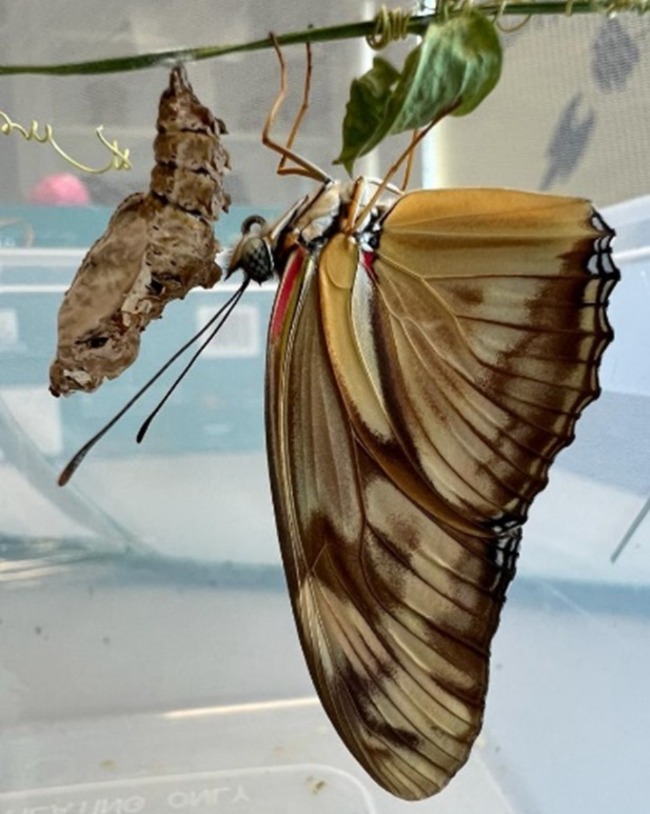 Three weeks after the rare caterpillar was sighted, Julia, the butterfly, emerged from the chrysalis, much to everyone’s excitement.