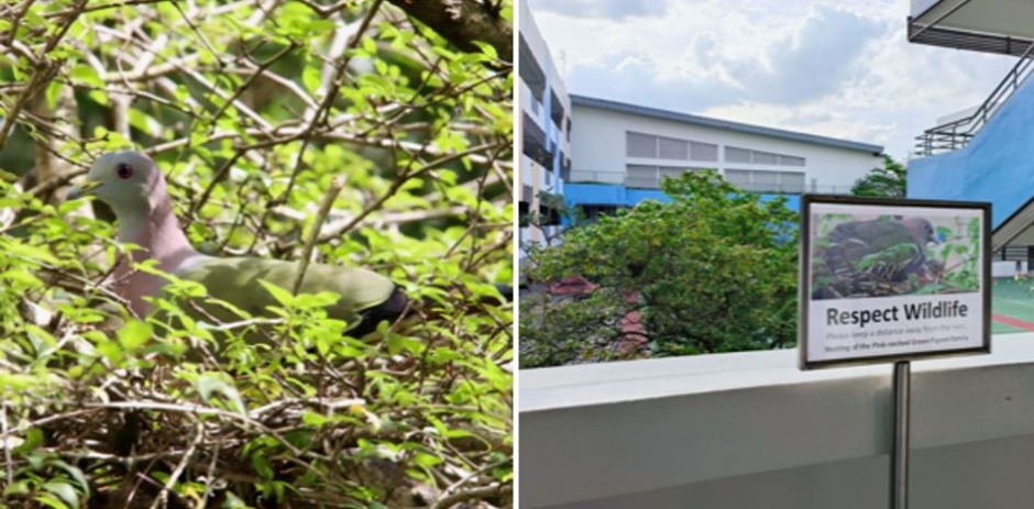 A pink-necked green pigeon nesting in Commonwealth Secondary. (Photo credit: Commonwealth Secondary School)