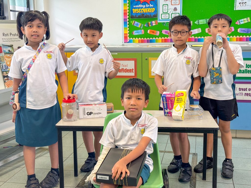 As one of the main themes for Innovation Week was environmental sustainability, the Primary 2 students were tasked with creating musical instruments out of recyclables. With their upcycled instruments, they performed a song that they learnt in Music lessons, as part of the school’s Shining Arts showcase.