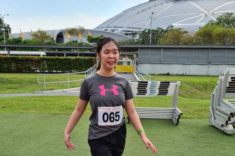 While Mrs Ho provided the opportunity, Leyin took charge of her own training for the event. Since young, she has had the habit of brisk walking around her neighbourhood park to build up her strength. Before the competition, she switched up her routine by running at the stadium. Her father helped too, by timing her and teaching her static exercises to help her improve her balance.