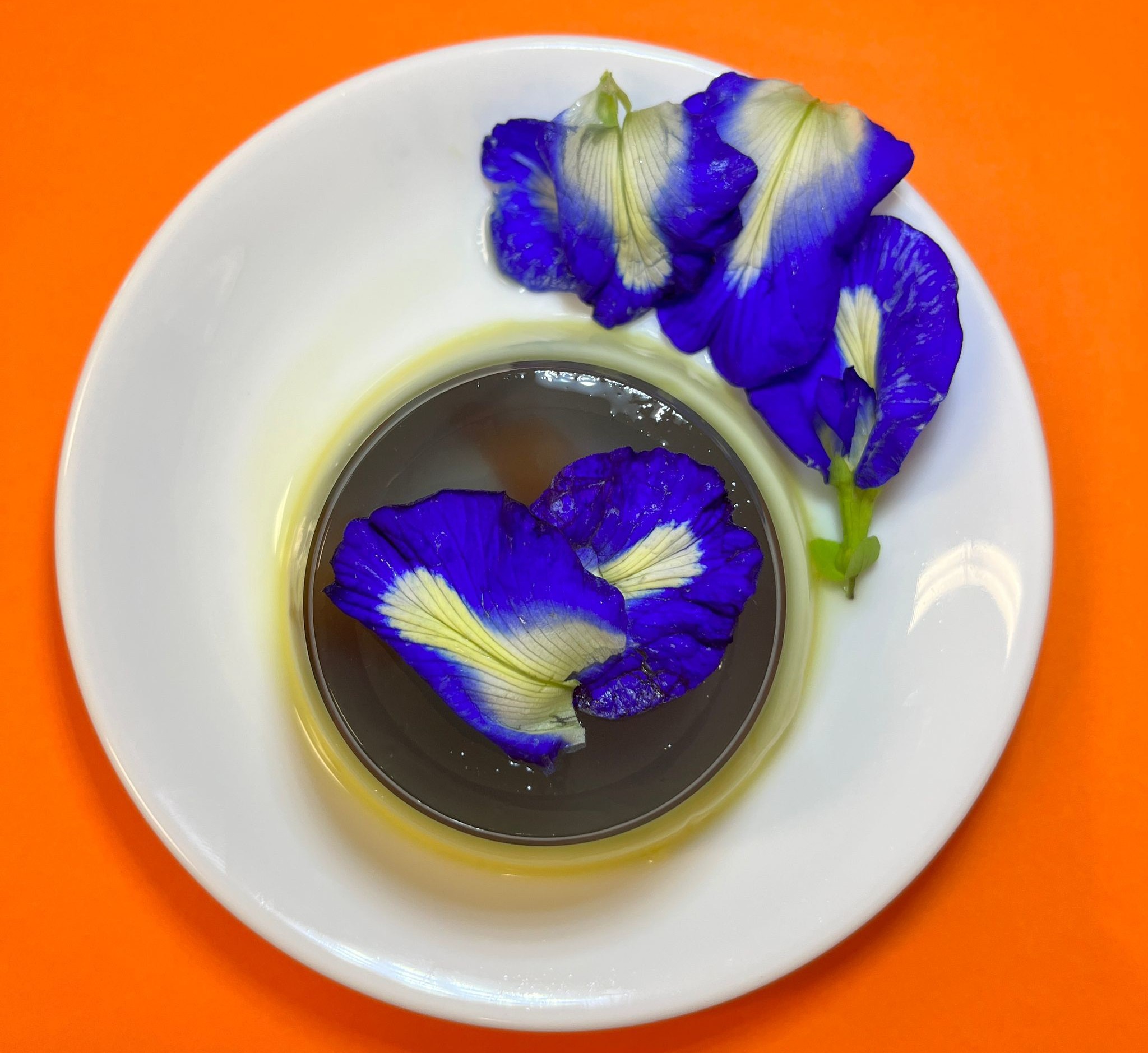 Mango pudding with butterfly pea jelly prepared using fresh harvest from the school’s urban farm.