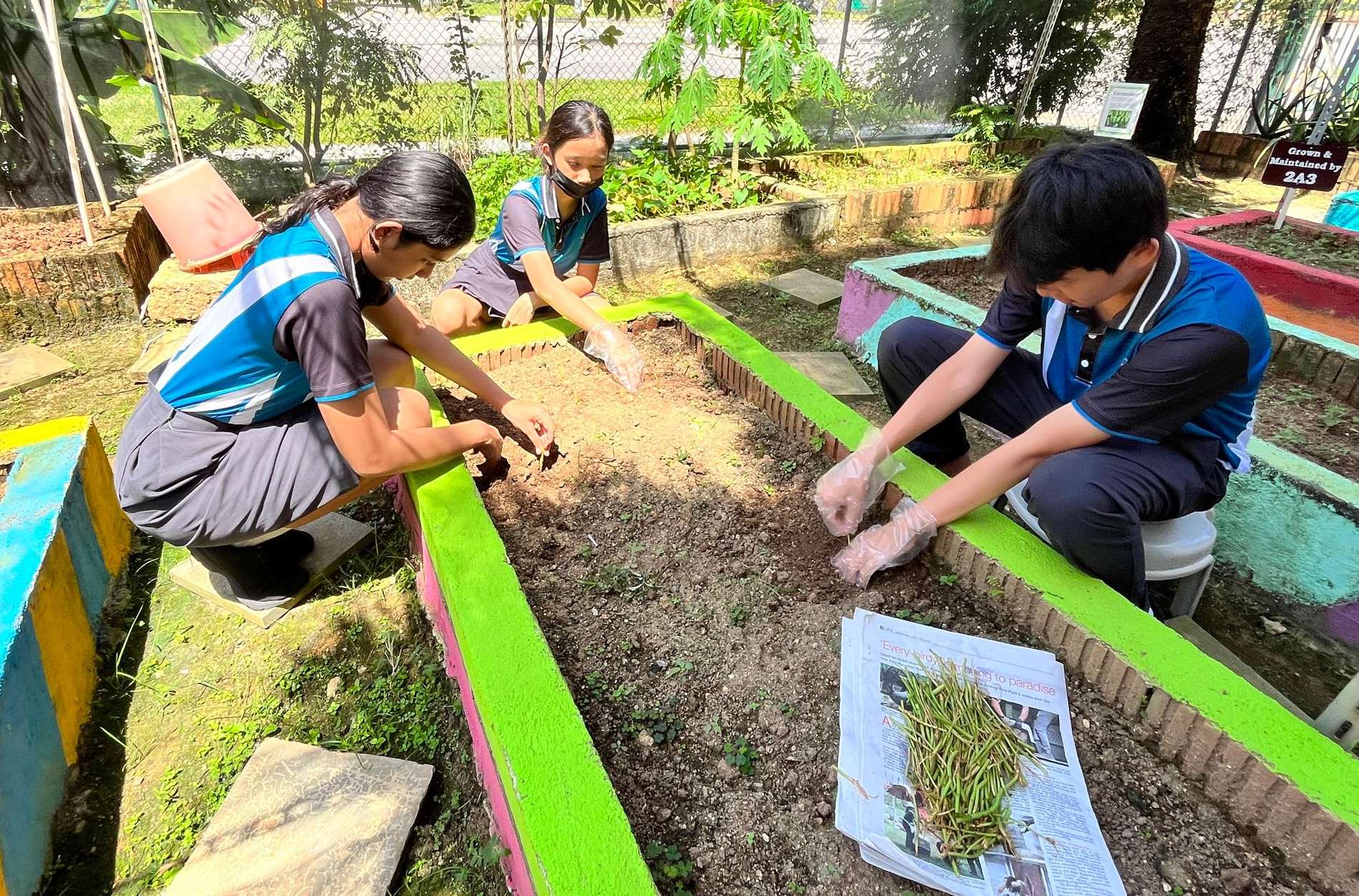 Eggshells are used as fertiliser in the school’s vegetable plots, which are maintained by Secondary 2 and Secondary 3 NFS students.