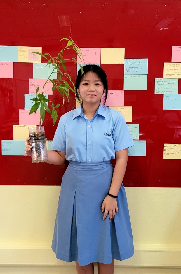 “My plant took a very long time to grow, although I was watering it often. It didn’t show any signs of growing even when other students’ plants had already grown much larger. But after a long time, my plant finally grew!” wrote Zi En.