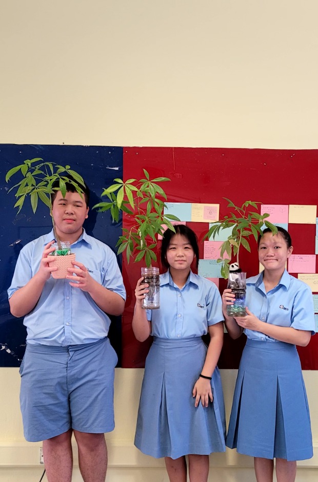 Jay, Zi En, and Sharlyn, now in Secondary 2 and seasoned plant parents.