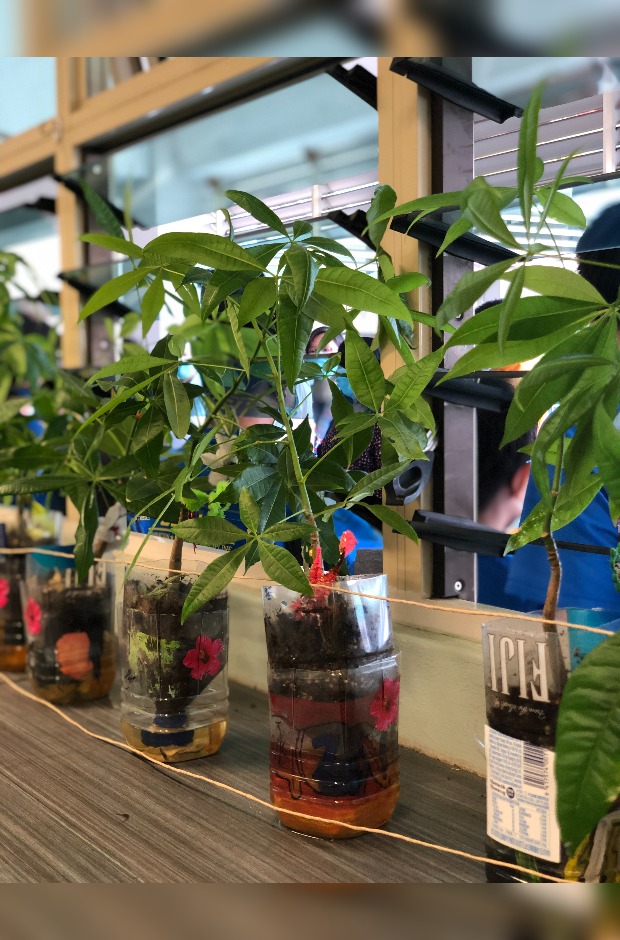 Woven into this are also opportunities for students to learn about sustainability, as well as to exercise their creative muscles; the plant pots are made of upcycled plastic bottles, which students personalise during Art class.