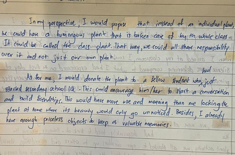 “My plant got brutally split in half by a strong gust of wind, but it persevered and grew healthily since my plant had long roots. It symbolised to me the value of being resilient and not letting setbacks ‘uproot’ me,” said Jay Lim.