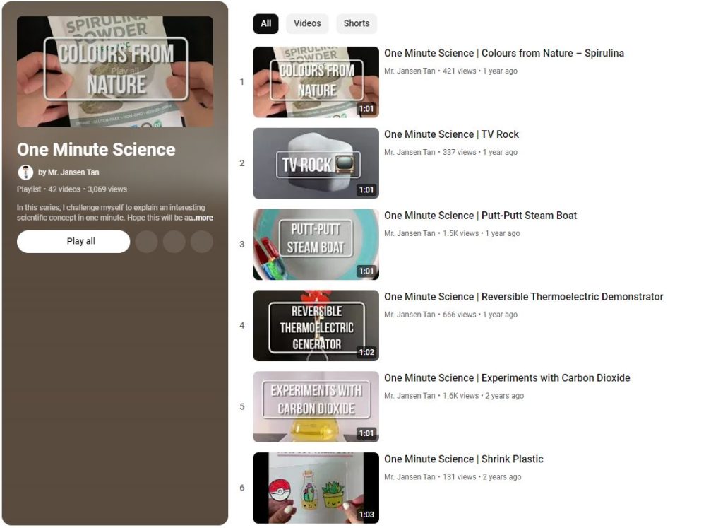 “Parents who want to excite their kids about learning Science can try the activities in my videos at home. Teachers can also use the resources I’ve made, without needing to start from scratch,” he says.