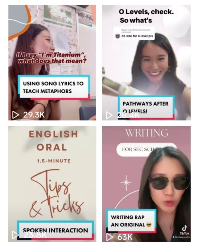 When Ms Ynez Lim joined a learning circle of English teachers, her groupmates encouraged her to expand her social media work to more students. “They found my videos useful in engaging their students,” she recounts. After getting the support of her school leaders, she made her page public.